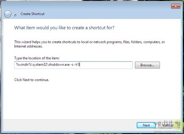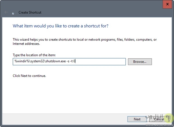 در برخی موارد اینکار به این سادگی صورت نمیگیرد.کار دیگری که میتوانید انجام دهید ایجاد یک شورتکات روی دسکتاپ و استفاده از آن است.روی دسکتاپ راست کلیک کرده و New>Shourcut را انتخاب کنید. سپس در فیلد محل عبارت زیر را تایپ کنید: