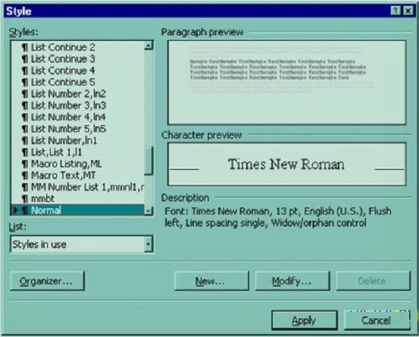 برای تغییر حالت پیش فرض متن در ورد نیز کافی است از طریق قسمت Style گزینه مورد نظر را انتخاب کنید. اگر می خواهید متن شما حالت خاصی نداشته باشد گزینه Normal را انتخاب کرده و سپس OK را بزنید.