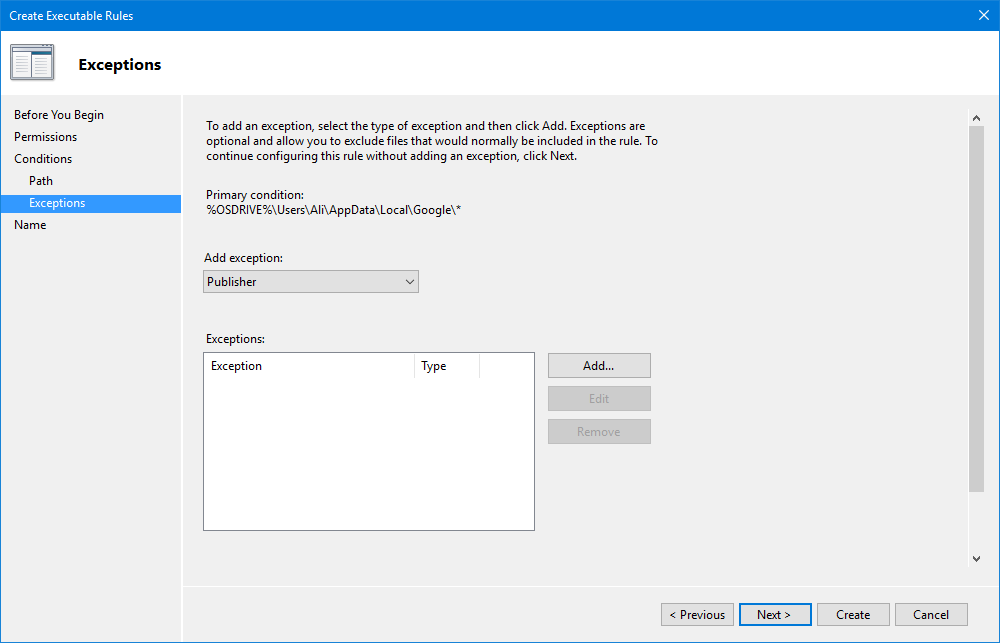 مرحله Exceptions می توانید استثنائاتی نظیر اجازه دسترسی به یک سری فایل های مشخص را در نظر بگیرید.