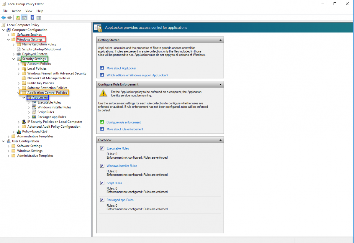 Computer Configuration => Windows Settings => Security Settings => Application Control Policies=> AppLocker
