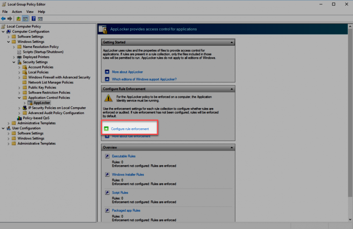 در صفحه بر روی لینک Configure Rule Enforcement کلیک کنید.