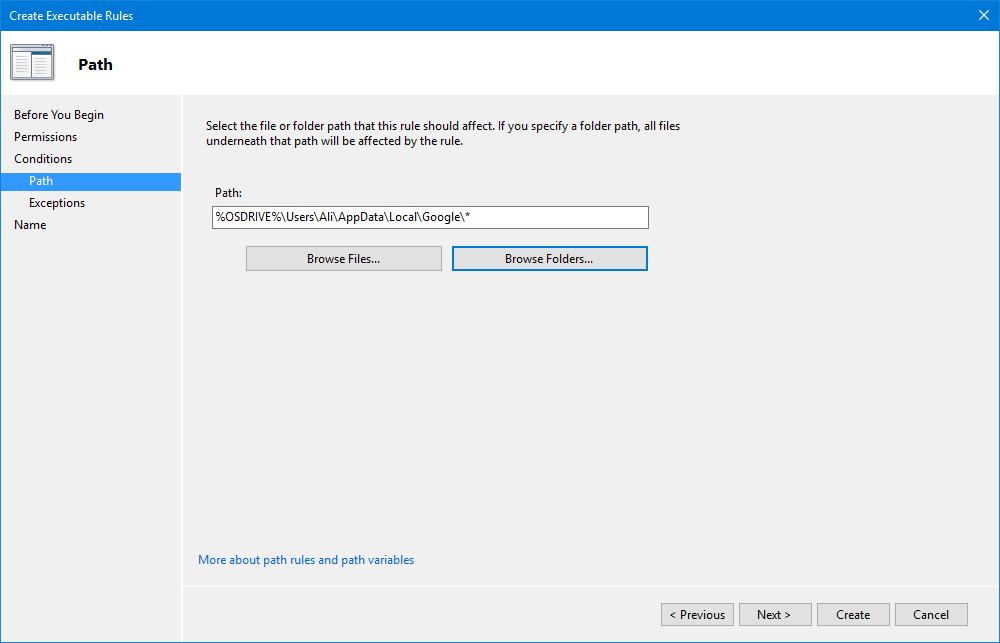 Path می توانید مسیری را مشخص کنید تا از طریق این مسیر هیچ نرم افزاری حق اجازه اجرا را نخواهند داشت.
