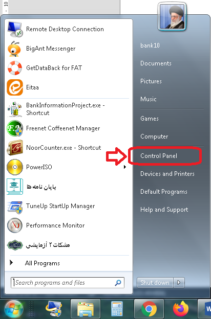 الف) از قسمت منو استارت ویندوز کنترل پنل را باز کنید: