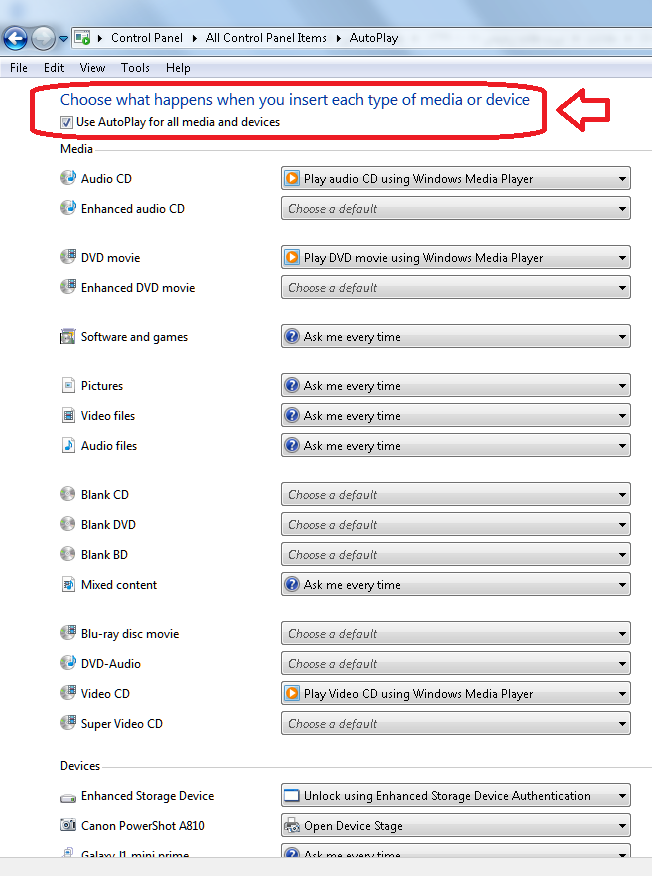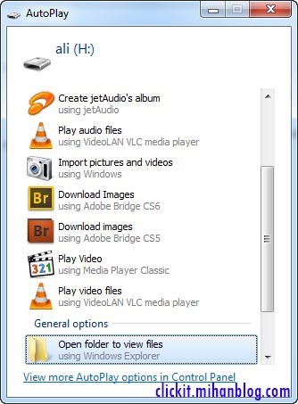 سپس بر روی گزینه autoplay کلیک نمایید و در صفحه باز شده اولین گزینه را تیک دار کنید: