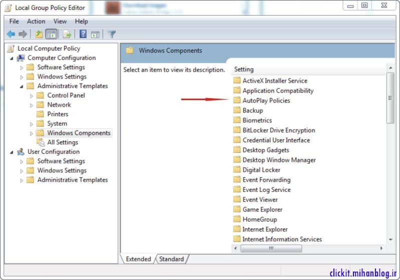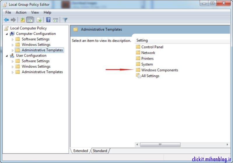 بعد در سمت راست روی Windows Components دابل کلیک کنید.