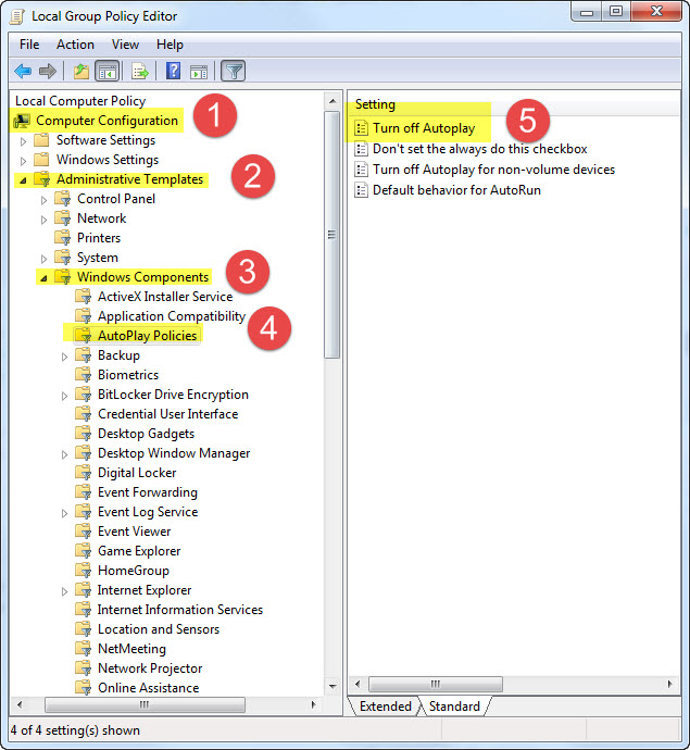 Computer Configuration >> Administrative Templates > Windows Components > AutoPlay Policies