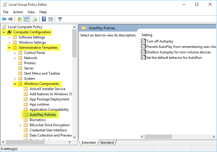 11. بعد از باز شدن تنظیمات به مسیر Computer Configuration > Administrative Templates > Windows Components > AutoPlay Policies بروید .