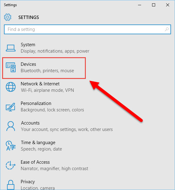 1. در توضیحات بالا به صورت مختصر شرح داده شده که قابلیت AutoPlay چه ویژگی را در اختیار شما قرار میدهد. در ویندوز 10 شما می توانید اتوران فلش مموری ، سی دی رام یا هر وسیله خارجی که به محض متصل شدن به کامپیوتر پنجره اتوران آن نمایش داده می شود را فعال یا غیر فعال کنید . برای انجام اینکار بر روی منوی Settings کلیک کرده و گزینه Device را انتخاب کنید .