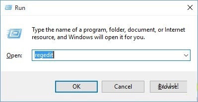 این روش خیلی رایج نیست. اما با استفاده از این روش نیز می توان تاریخچه را حذف کرد. برای این کار از کلید های ترکیبی Win + R استفاده کنید و در کادر مربوط مطابق شکل زیر ، کلمه ی regedit را تایپ و اینتر کنید تا وارد رجیستری ویندوز شوید.