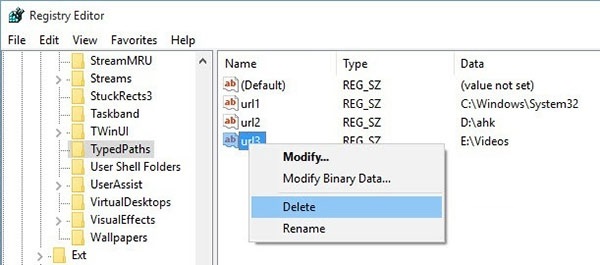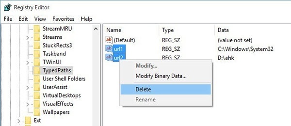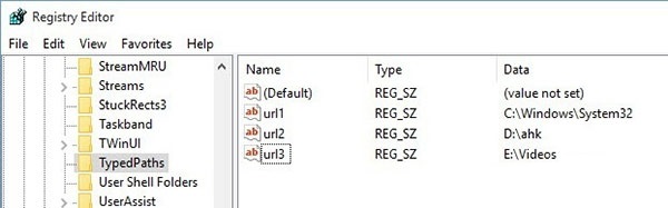 HKEY_CURRENT_USER\Software\Microsoft\Windows\CurrentVersion\Explorer\TypedPaths
