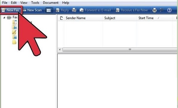 روی new fax در سمت چپ نوار ابزار کلیک کنید.برای اتصال به خط تلفن wizard را دنبال کنید.