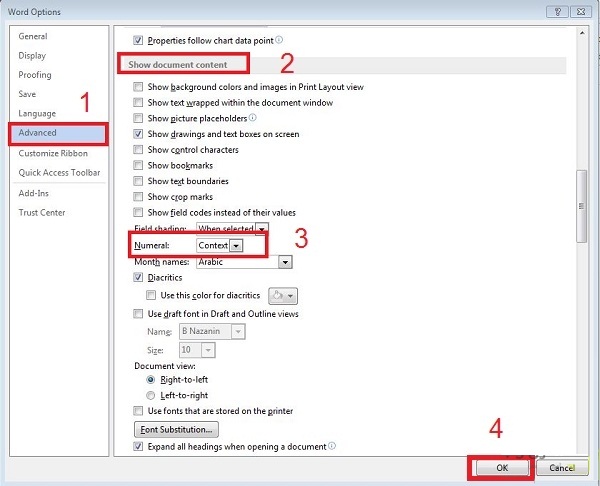 ۳ روش حل مشکل اعداد فارسی در ورد ۲۰۱۶ ، ۲۰۱۳ ، ۲۰۱۰ و