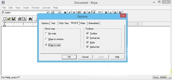 Word Options ، پنجره