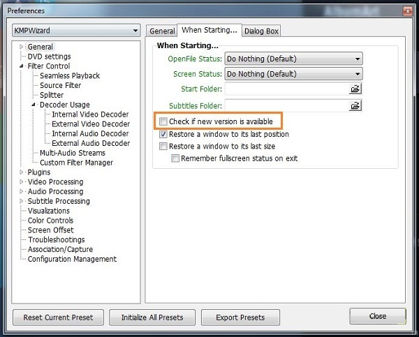 جلوگیری از نمایش پنجره آپدیت و حذف تبلیغات KMplayer