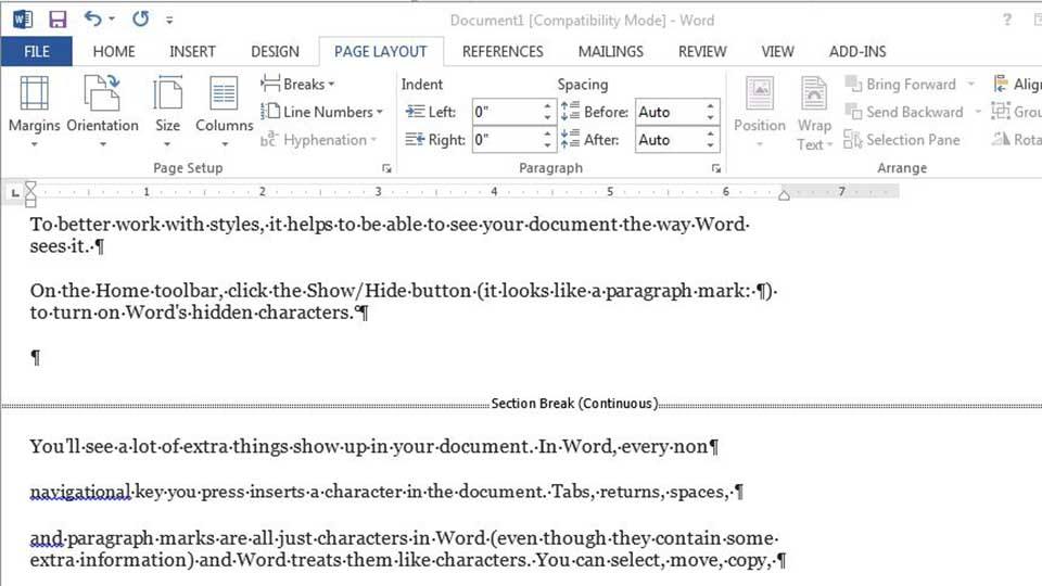 Enter را می زنید، چیزی مشاهده نمی کنید، اما این بدان معنی نیست که در آنجا چیزی وجود ندارد. در واقع نمادها و کاراکترهایی در سرتاسر سند