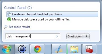 disk management تایپ کنید