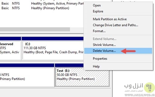Delete volume را انتخاب نمایید