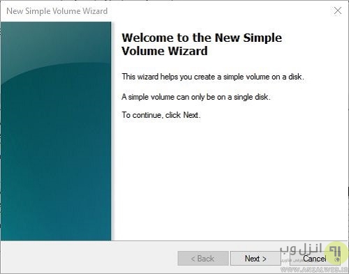 New simple volume روند ایجاد پارتیشن جدید را با طی کردن مراحل