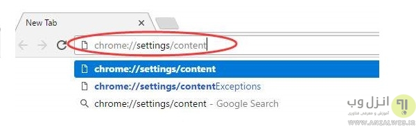 همانطور که اشاره کردیم گوگل به طور پیش فرض فلش را در مرورگر کروم غیرفعال کرده است. اگر سایت جایگزینی پیدا نمی کنید مجبور هستید فلش پلیر را در گوگل کروم فعال کنید. برای فعال کردن فلش پلیر مرورگر گوگل کروم خود را باز کنید. در قسمت نوار آدرس عبارت chrome://settings/content را تایپ کنید. بعد کلید اینتر صفحه کلید خود را فشار دهید.