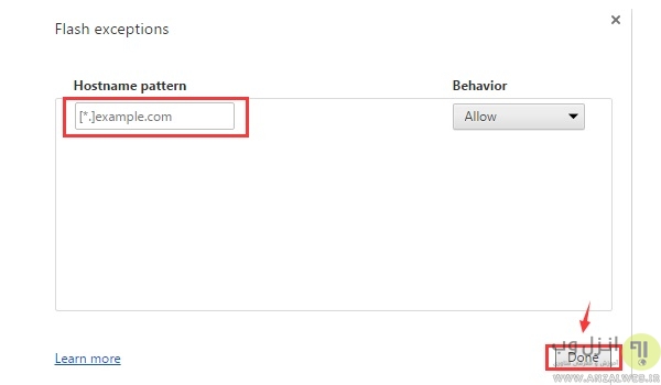 بعد در فیلد Hostname pattern آدرس سایت مورد نظر خود را تایپ کنید. روی Done کلیک کنید تا تغییرات ذخیره شود. حالا صفحه وب مورد نظر خود را رفرش کنید و تغییرات را مشاهده کنید.