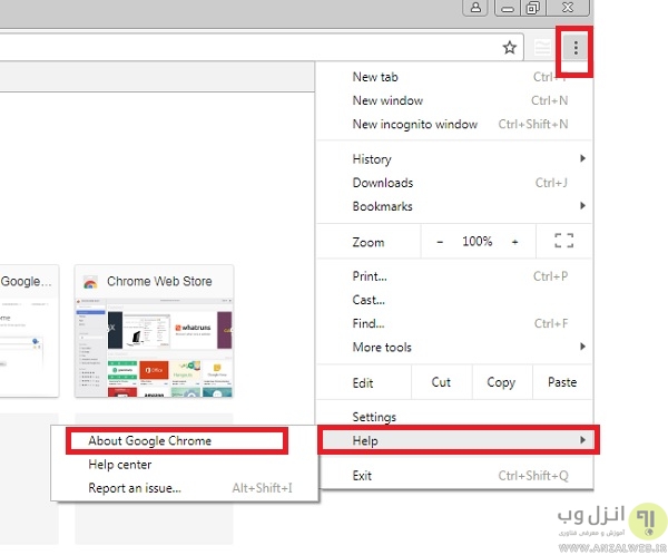 اگر فلش پلیر در گوگل کروم شما مشکل دارد شما باید مطمئن شوید که آخرین نسخه گوگل کروم را نصب کرده اید. برای مطمئن شدن از این که آخرین نسخه گوگل کروم را نصب کرده اید روی سه نقطه عمودی در سمت راست – بالا مرورگر کلیک کنید. بعد به مسیر Help > About Google Chrome بروید.
